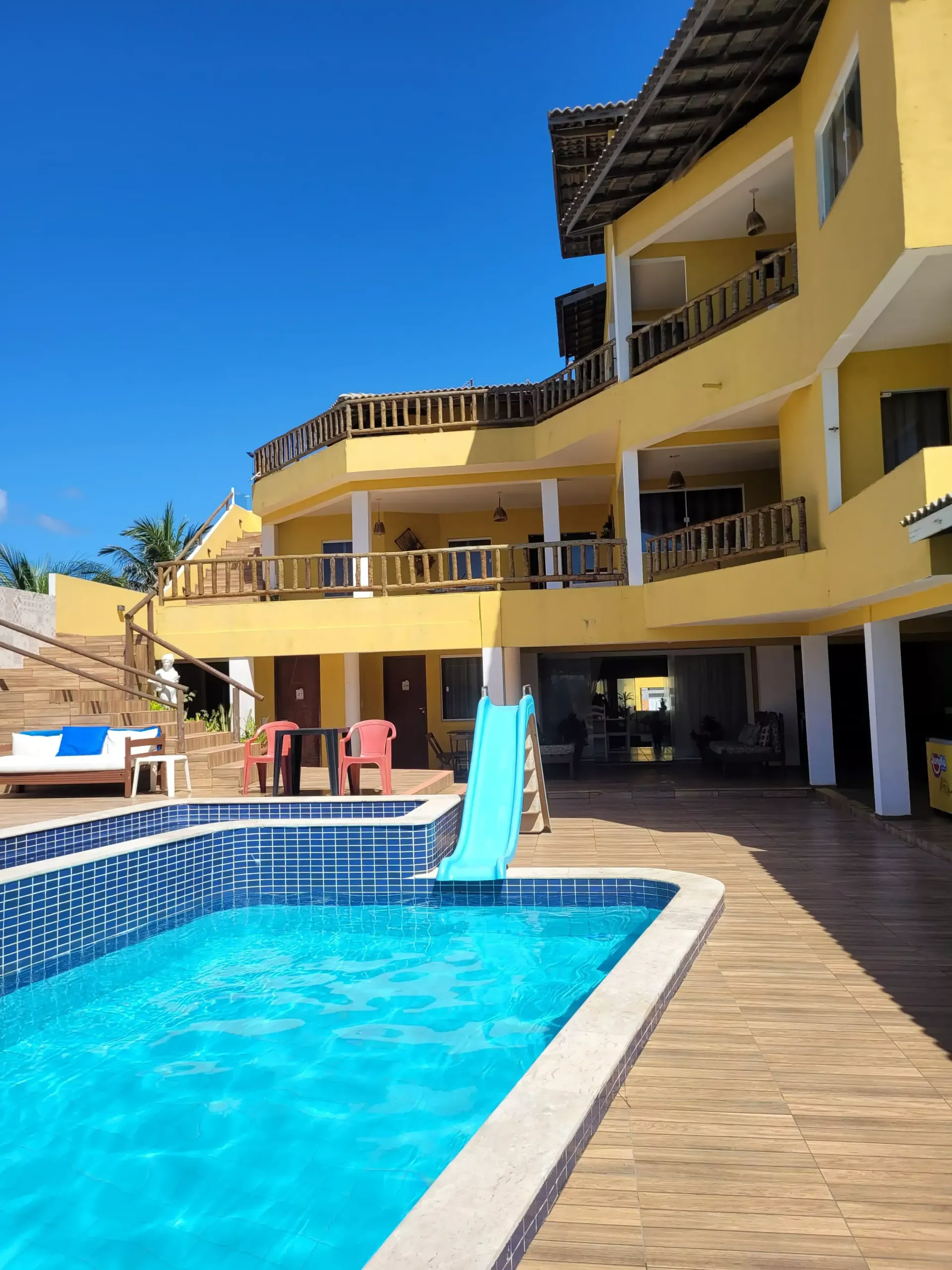 Nossa piscina foi pensada para proporcionar momentos inesquecíveis de lazer e descanso em família. Dividida em áreas para adultos e crianças, ela conta com uma charmosa cascata e está envolta por um belo jardim. Tudo isso com o privilégio de uma vista deslumbrante para o mar — o cenário perfeito para relaxar com conforto e tranquilidade.
